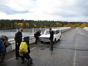 We rijden verder en na een onderwater test wordt de quad van Harko goed bevonden! Via de stad Nikel rijden we door naar Moermansk. Onderweg komen we nog een paar jongens tegen die pech hebben met hun Lada. We stappen af en helpen de jongens zodat zij ook weer verder kunnen.
