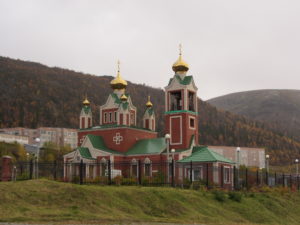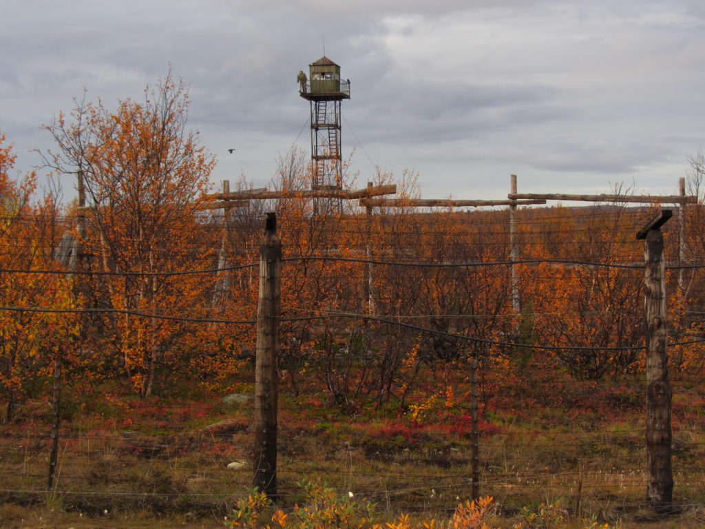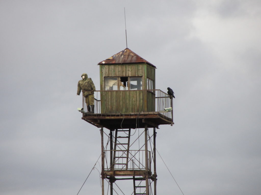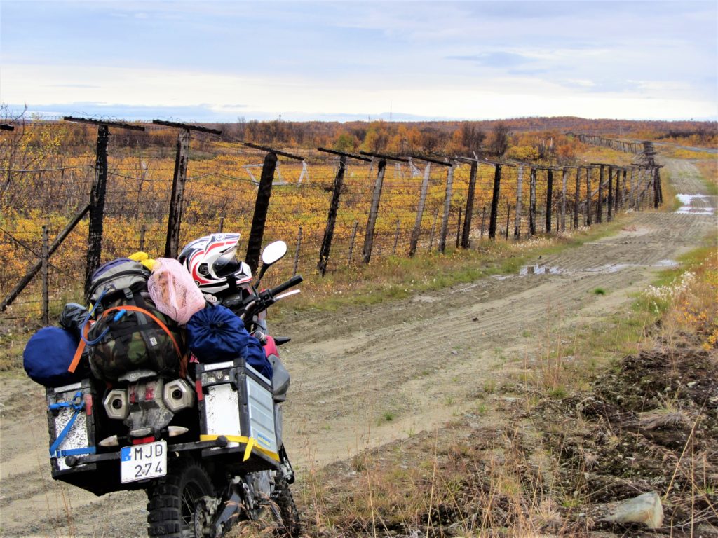 Na een paar dagen zijn we in Noorwegen en bij Kirkenes, nemen we de grensovergang naar Rusland. Bij de grensovergang werden alle papieren nauwkeurig bekeken en na een kleine oponthoud van 3 uur mochten we dan eindelijk Rusland in! We besloten om een oude grens weg langs niemansland te nemen richting Moermansk. We zien dan al snel een hekwerk naast ons opduiken. Achter dit hekwerk staan overal uitkijktorens, voorzien van pop in militaire kledij en camera’s erop. Even later werd het ons duidelijk dat dit een extra grens is die ongeveer 10 km in Rusland ligt en parallel loopt aan de echte grens.