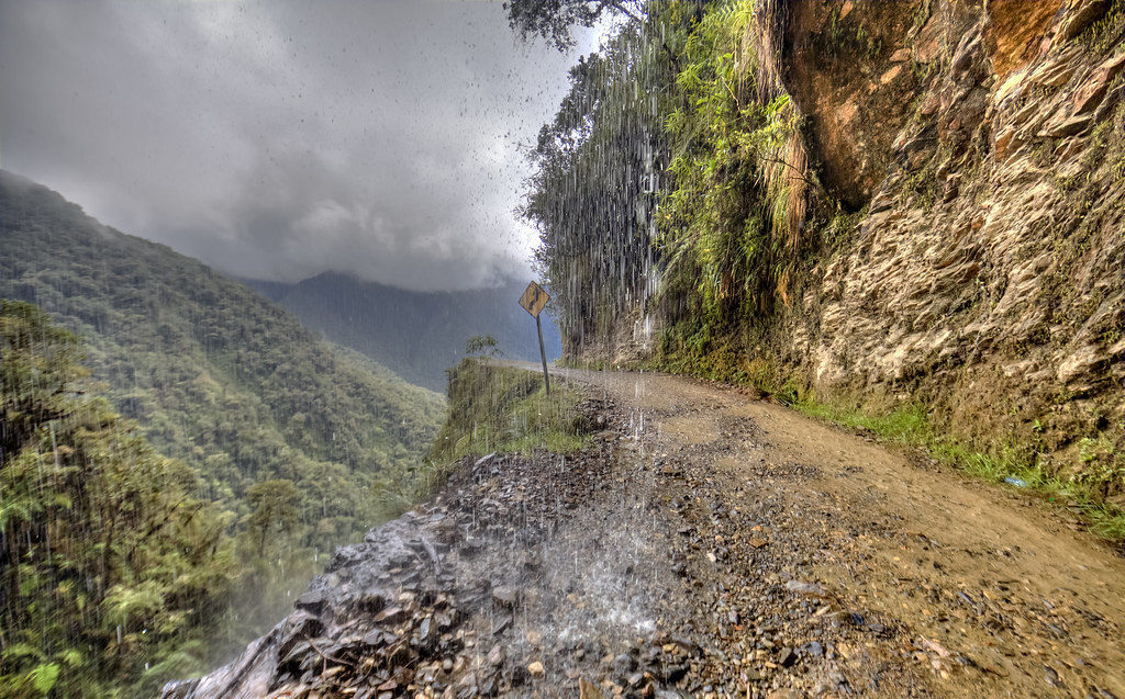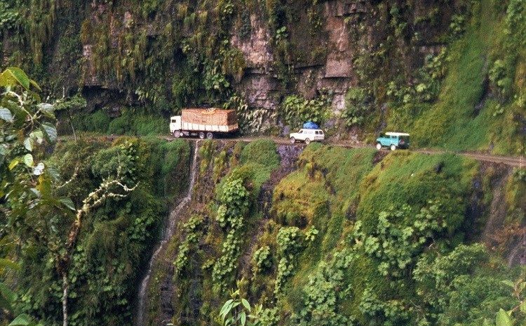 Deze weg wordt ook wel “El Camino de la Muerte, of Death Road genoemd. Naar schatting gaan er 200 tot 300 mensen per jaar dood op deze 61 kilometer lange weg door het Amazoneregenwoudgebied. De weg daalt in deze korte afstand ongeveer 3.300 meter, en dat langs steile hellingen en hoge afgronden (minstens 600 meter). En dat allemaal op een weg, vaak niet breder dan 3.2 meter, en uiteraard zonder vangrail. De weg kent zo zijn eigen verkeersregels, de bestuurder die bergafwaarts gaat kan nooit de weg ‘opeisen’, deze moet naar de rand van de weg. Er wordt dan ook links gereden op deze weg, in tegenstelling tot de andere wegen in Bolivia waar rechts wordt gereden.