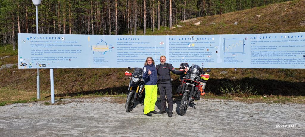 Op de derde dag van hun reis komen ze aan in Jönköping, Zweden. Dit is een dorpje ten zuiden gelegen van een van de grootste meren van Zweden, genaamd Vättern. Deze mooie plek konden ze natuurlijk niet zomaar voorbij laten gaan, dus hebben ze hier een kijkje genomen. Na het zien van de Vättern hebben ze even goed uitgerust van al het reizen, maar de volgende dag was het toch echt tijd om weer door te rijden. De rit die volgde was niet makkelijk vanwege een onverwachte omleiding en de temperatuur die steeds verder daalde. Maar dat mocht de pret niet drukken, want op hun zesde dag bereikten ze toch wel een kleine mijlpaal. Ze komen aan bij de Poolcirkel!