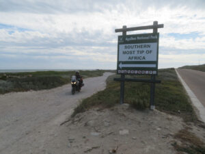 Willem: ‘Wat een reis, wat een avontuur, het is soms niet te bevatten. Mijn microprocessor heeft overuren gemaakt en draait nog steeds full speed om alles te verwerken. Bijna 21.000 km afgelegd en 27 landen gezien van Wilnis naar Cape Agulhas. De reis Wilnis-Nordkapp-Cape Agulhas bedraagt bijna 29.000 km en doet 32 landen aan. Wat hebben we veel gezien en meegemaakt. De bekende foto’s worden gemaakt en een groep Chinezen wil met ons op de foto. Het is mooi geweest, we gaan naar ons guesthouse dat 2 km verderop ligt. Tijd om de reis af te sluiten met whiskey!’