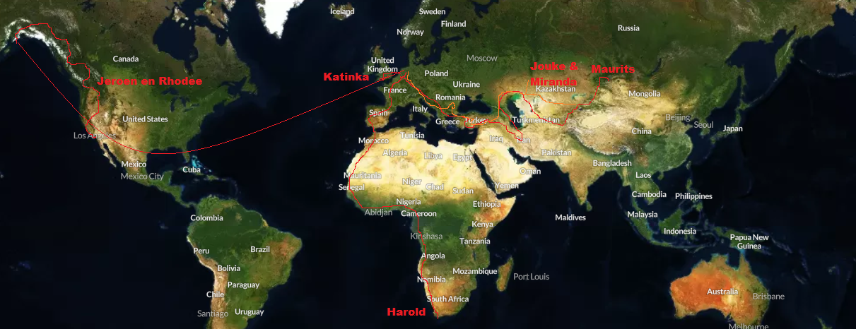 Wat? Nou dat er op bijna elk continent van de wereld klanten van ons aan het reizen zijn met hun motor. Avonturiers die wij, op welke wijze dan ook, geholpen hebben in de voorbereiding om hun droomreis werkelijkheid te laten worden!
