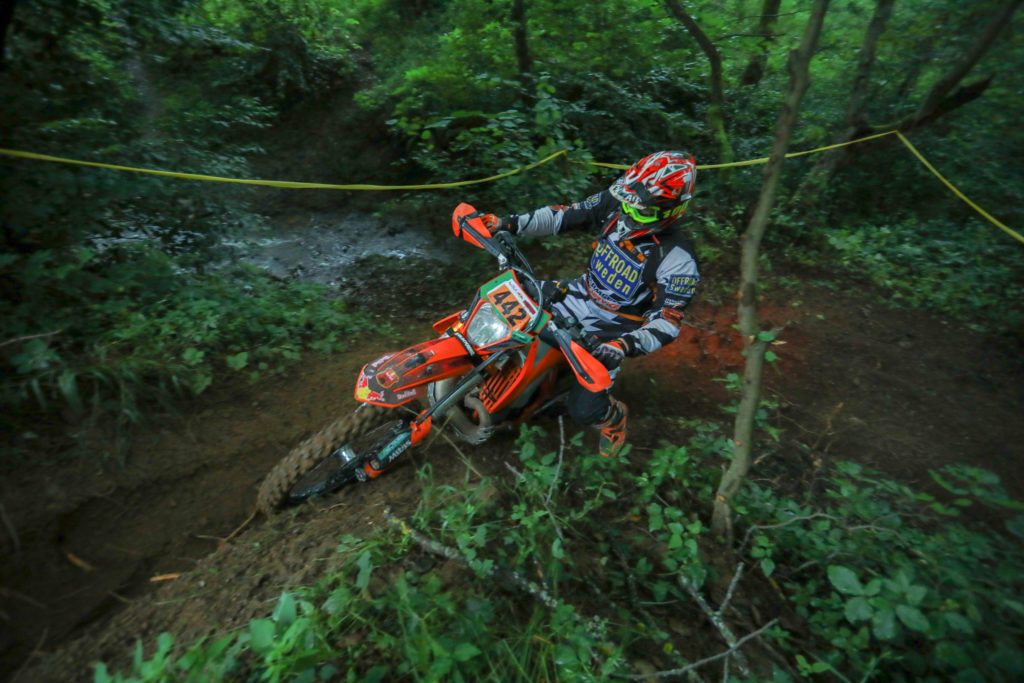 Door mijn slechte 3e dag moest ik vandaag helaas weer verder achteraan starten. Waar we de vorige dag qua weer mee geëindigd waren, starten we dag 4 mee, regen, heel veel regen. De voorspellingen waren ook dat dit de hele dag door zou blijven gaan. Doordat alles al kapot was gereden, door de vele rijders voor mij, was het track spekglad en zat ik er helemaal door. Ik had geen energie meer om te rijden. Het was glijden, vallen, opstaan, rijden, klimmen, glijden, vallen en weer opstaan. Blij zijn dat je weer een helling hebt gehaald om vervolgens weer bij het begin te beginnen, vallen, opstaan, glijden enz.