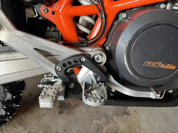 De TwinPegs Husqvarna 701 kit voor achterste voetsteunen is speciaal ontworpen voor optimale grip en comfort tijdens het rijden. De kit wordt compleet geleverd met beugels en voetsteunen en is beschikbaar in standaard hoogte of verlaagde hoogte. De montagebeugels zijn voor beide versies vrijwel identiek. Let op: de TwinPegs voor Husqvarna 701 verandert de hoogte van uw primaire voetsteunen niet, kies daarom de versie die past bij je huidige voetsteunen. Gebruik standaard hoogte tot -5 mm en verlaagde hoogte als de primaire voetsteunen lager zijn. Voor een precieze afstelling van de achterste voetsteunen is een shimset inbegrepen, waarmee je de hoogte eenvoudig kunt aanpassen. Zo krijg je perfect op elkaar afgestemde voor- en achterste voetsteunen voor uw Husqvarna 901.