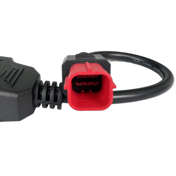 Deze kabel zet de 6-pins diagnostische aansluiting van je motor om naar een standaard OBD (16-pins) aansluiting, zodat je eenvoudig verbinding kunt maken met onze OBD dongle voor diagnose en onderhoud.