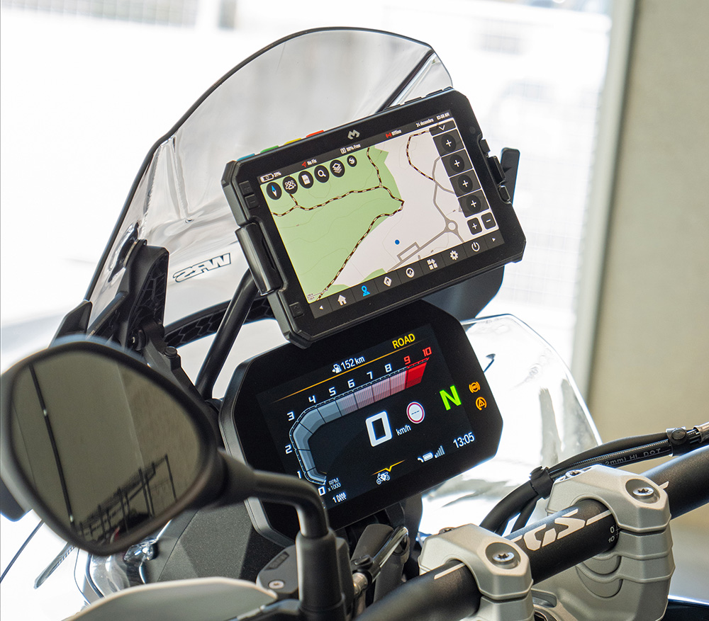 Of je nu snel wilt inzoomen in een bergpas, een route wijzigt tijdens een tourdag of schakelt tussen kaartlagen — alles is direct bereikbaar.