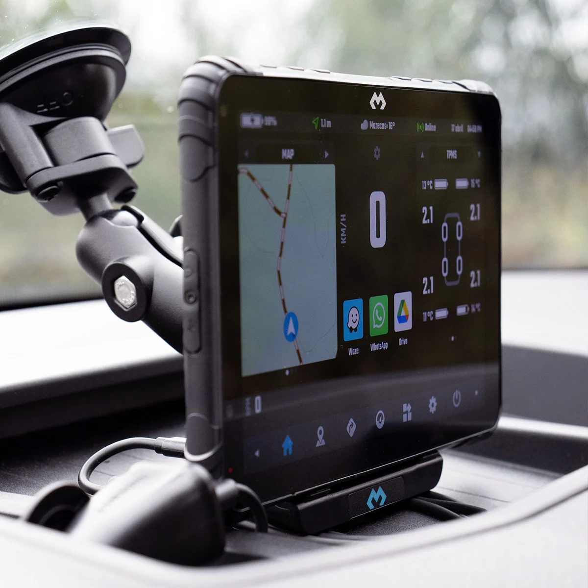 De DMD Autohouder is speciaal ontworpen voor gebruik met de DMD-T865 Navigatietablet en biedt een stabiele, veilige en praktische montageoplossing voor 4×4-rijders, campers en overlanders. Deze lichtgewicht maar robuuste houder houdt je navigatietablet stevig op zijn plaats, zelfs tijdens ritten over oneffen terrein of in uitdagende weersomstandigheden.