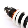 This shock absorber uses a damping shim stack specifically developed for its application. The aluminum shock absorber housing creates maximum thermal stability by optimal heat removal. Not only leads this to stable performance but also to a longer lifetime of the shock and its oil. To create the best performance for every model we use high flow pistons, low friction seals, and dedicated shimstacks. We use heavy duty components like microfinished induction hardened quenched&tempered 42CrMo 16mm piston rods, best quality bearings and stainless steel bushings. Every shock can be opened and serviced, or tuned for the customer’s application. For all shocks there is a range of springs from softer than standard till harder.