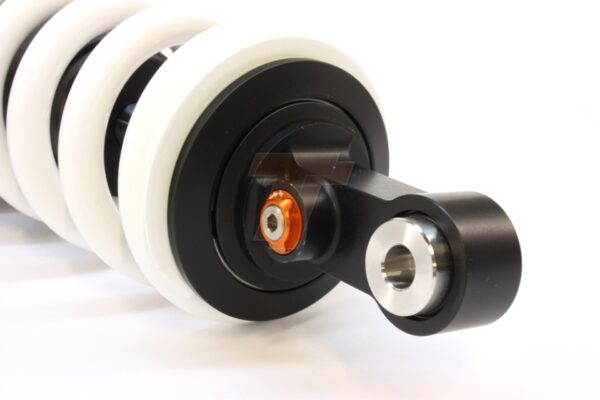 This shock absorber uses a damping shim stack specifically developed for its application. The aluminum shock absorber housing creates maximum thermal stability by optimal heat removal. Not only leads this to stable performance but also to a longer lifetime of the shock and its oil. To create the best performance for every model we use high flow pistons, low friction seals, and dedicated shimstacks. We use heavy duty components like microfinished induction hardened quenched&tempered 42CrMo 16mm piston rods, best quality bearings and stainless steel bushings. Every shock can be opened and serviced, or tuned for the customer’s application. For all shocks there is a range of springs from softer than standard till harder.