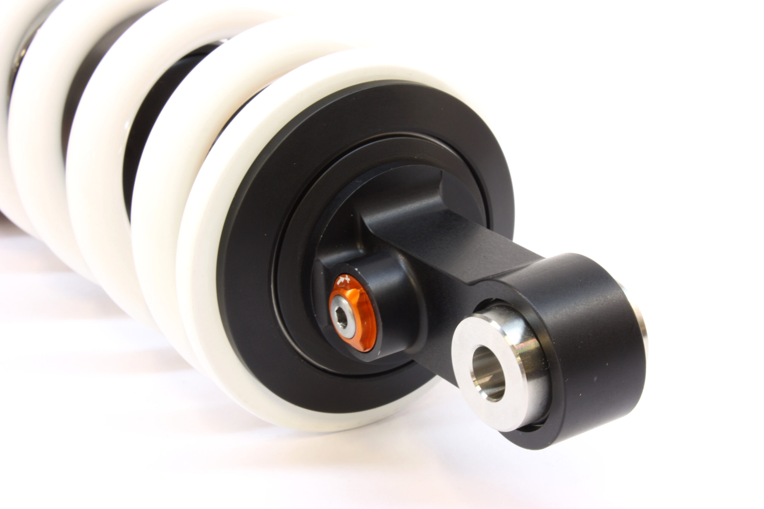 This shock absorber uses a damping shim stack specifically developed for its application. The aluminum shock absorber housing creates maximum thermal stability by optimal heat removal. Not only leads this to stable performance but also to a longer lifetime of the shock and its oil. To create the best performance for every model we use high flow pistons, low friction seals, and dedicated shimstacks. We use heavy duty components like microfinished induction hardened quenched&tempered 42CrMo 16mm piston rods, best quality bearings and stainless steel bushings. Every shock can be opened and serviced, or tuned for the customer’s application. For all shocks there is a range of springs from softer than standard till harder.