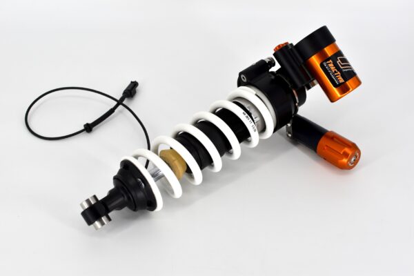 This shock absorber fits plug and play into the motorbike with the original connector. This ensures that the original controls on the handlebar remain operational. There is no need for a cancelation kit or any other modification to the motorbike or its wiring harness. The shock absorber contains the Tractive DDA damping valve (Dynamic Damping Adjustment). The motorbike’s control unit does not notice electrical differences between the original damping valve and the Tractive DDA damping valve. However, the Tractive DDA valve is more stable, has a larger adjustment range and adjusts faster than the orginal valve.