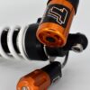 This shock absorber uses a damping shim stack specifically developed for its application. The aluminum shock absorber housing creates maximum thermal stability by optimal heat removal. Not only leads this to stable performance but also to a longer lifetime of the shock and its oil. To create the best performance for every model we use high flow pistons, low friction seals, and dedicated shimstacks. We use heavy duty components like microfinished induction hardened quenched&tempered 42CrMo 16mm piston rods, best quality bearings and stainless steel bushings. Every shock can be opened and serviced, or tuned for the customer’s application. For all shocks there is a range of springs from softer than standard till harder.