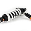 This shock absorber uses a damping shim stack specifically developed for its application. The aluminum shock absorber housing creates maximum thermal stability by optimal heat removal. Not only leads this to stable performance but also to a longer lifetime of the shock and its oil. To create the best performance for every model we use high flow pistons, low friction seals, and dedicated shimstacks. We use heavy duty components like microfinished induction hardened quenched&tempered 42CrMo 16mm piston rods, best quality bearings and stainless steel bushings. Every shock can be opened and serviced, or tuned for the customer’s application. For all shocks there is a range of springs from softer than standard till harder.