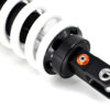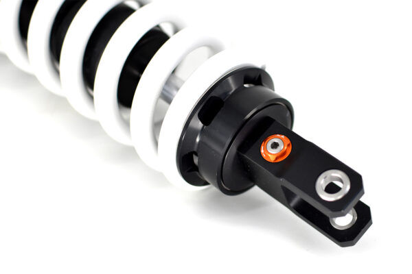 This shock absorber uses a damping shim stack specifically developed for its application. The aluminum shock absorber housing creates maximum thermal stability by optimal heat removal. Not only leads this to stable performance but also to a longer lifetime of the shock and its oil. To create the best performance for every model we use high flow pistons, low friction seals, and dedicated shimstacks. We use heavy duty components like microfinished induction hardened quenched&tempered 42CrMo 16mm piston rods, best quality bearings and stainless steel bushings. Every shock can be opened and serviced, or tuned for the customer’s application. For all shocks there is a range of springs from softer than standard till harder.