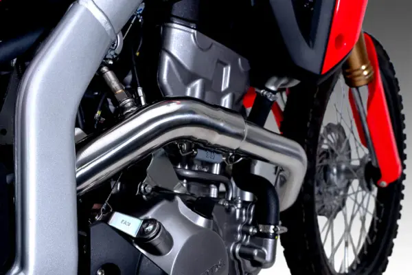 De rs-12 is ontwikkeld en getest in chino, californië, onder andere door crf-specialist ari henning. Het systeem is afgestemd op het 286cc eencilinderblok en verbetert zowel prestaties als rijgevoel, zonder in te leveren op controle.