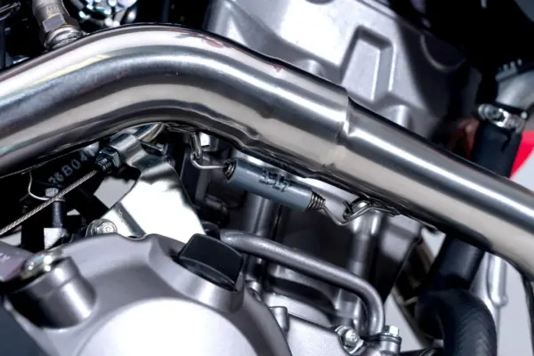 Elke rs-12 wordt geleverd met een mat carbon fiber hitteschild, dat bescherming biedt en netjes aansluit bij het ontwerp van de motor.