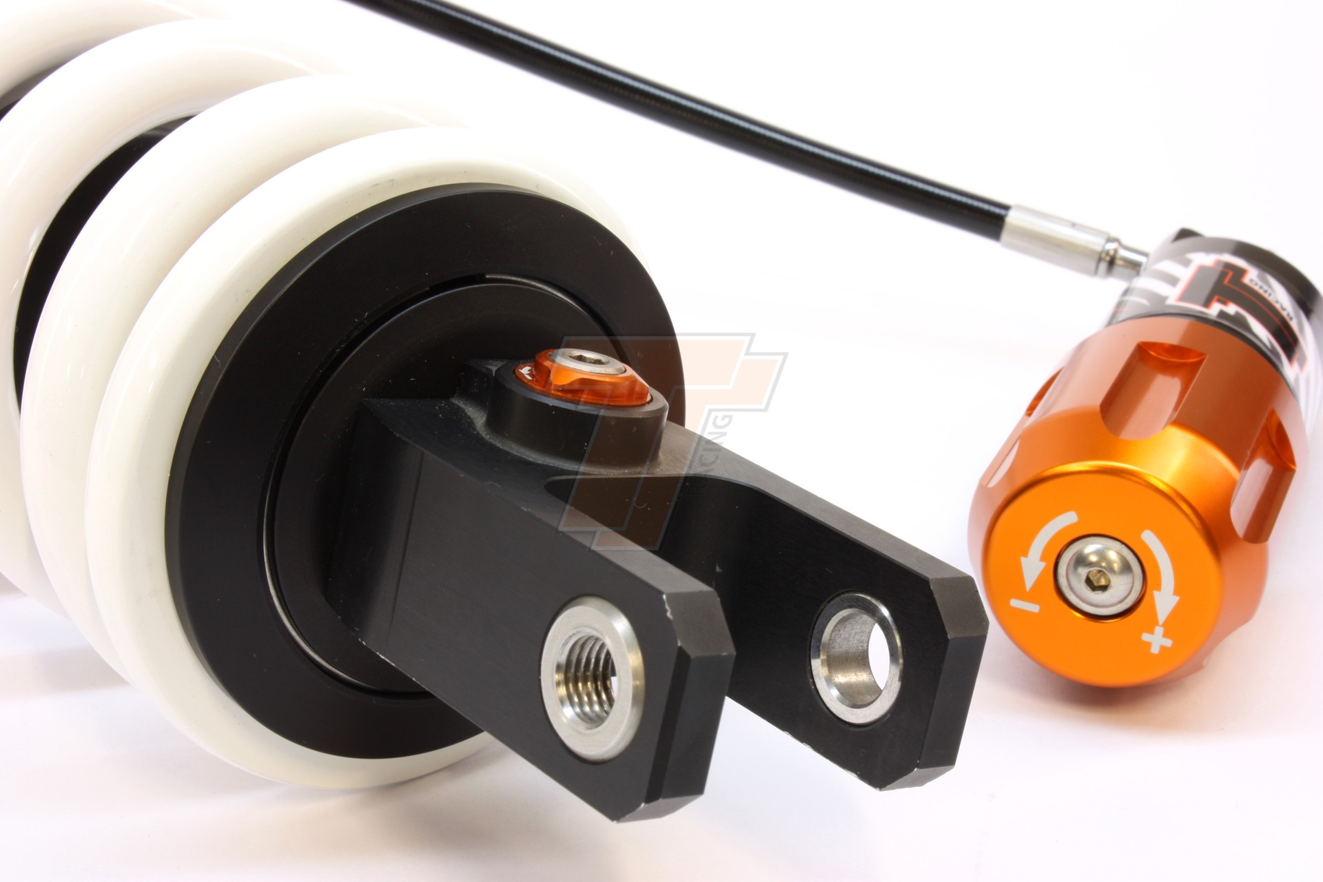 Ultimate performance shock absorber with adjustable rebound and high- and low-speed compression damping. Preload hydraulically adjustable for varying loads. PDSII anti bottoming.