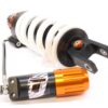 This shock has a mixture of nitrogen and oil inside. It has less internal friction than shocks with seperation pistons, but also has a damping that is relatively less stable. These characteristics make this shock a very good and “value for money” option when driving on tarmac roads. The shock absorber is equipped with a so-called PDSII system against bottoming out. It has a 2nd damping piston mounted on top of the main damping piston. At the end of the ingoing shock absorber stroke, this 2nd damping piston enters a cup and creates an extra damping level. This happens only during the ingoing movement and only at high ingoing speeds. It effectivily is a cushion that absorbs the high ingoing energy and prevents a hard bottoming of the shock absorber. This leads to increased comfort and safety. At the same time the bottoming impacts on the motorbike frame are minimised, leading to less bent bolts and damages.