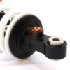 This shock absorber uses a damping shim stack specifically developed for its application. The aluminum shock absorber housing creates maximum thermal stability by optimal heat removal. Not only leads this to stable performance but also to a longer lifetime of the shock and its oil. To create the best performance for every model we use high flow pistons, low friction seals, and dedicated shimstacks. We use heavy duty components like microfinished induction hardened quenched&tempered 42CrMo 16mm piston rods, best quality bearings and stainless steel bushings. Every shock can be opened and serviced, or tuned for the customer’s application. For all shocks there is a range of springs from softer than standard till harder.