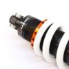 This shock absorber uses a damping shim stack specifically developed for its application. The aluminum shock absorber housing creates maximum thermal stability by optimal heat removal. Not only leads this to stable performance but also to a longer lifetime of the shock and its oil. To create the best performance for every model we use high flow pistons, low friction seals, and dedicated shimstacks. We use heavy duty components like microfinished induction hardened quenched&tempered 42CrMo 16mm piston rods, best quality bearings and stainless steel bushings. Every shock can be opened and serviced, or tuned for the customer’s application. For all shocks there is a range of springs from softer than standard till harder.