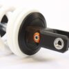 This shock absorber uses a damping shim stack specifically developed for its application. The aluminum shock absorber housing creates maximum thermal stability by optimal heat removal. Not only leads this to stable performance but also to a longer lifetime of the shock and its oil. To create the best performance for every model we use high flow pistons, low friction seals, and dedicated shimstacks. We use heavy duty components like microfinished induction hardened quenched&tempered 42CrMo 16mm piston rods, best quality bearings and stainless steel bushings. Every shock can be opened and serviced, or tuned for the customer’s application. For all shocks there is a range of springs from softer than standard till harder.