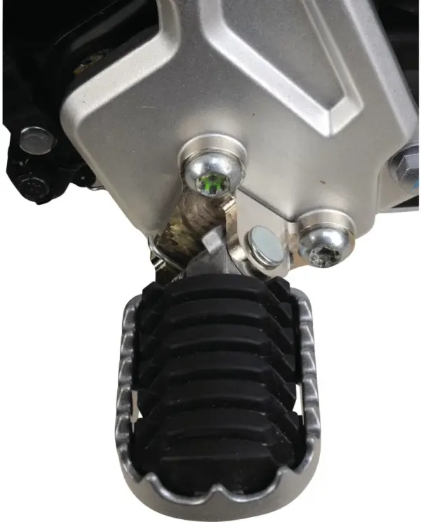 Wat de KEDO-set uniek maakt, is dat de voetsteunen dicht tegen het frame aan blijven zitten. Hierdoor behoud je een smalle grip op de motor, wat zorgt voor aanzienlijk meer voertuigcontrole dan bij andere verlagingssystemen.