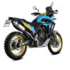 De MIVV Dakar Silver RVS demper is een geüpgrade versie 2023 met gewijzigde verbindingspijp zodat de swingarm niet meer in contact komt met de pijp. De foto’s van de lichtblauwe Tenere tonen de oude versie van 2022!