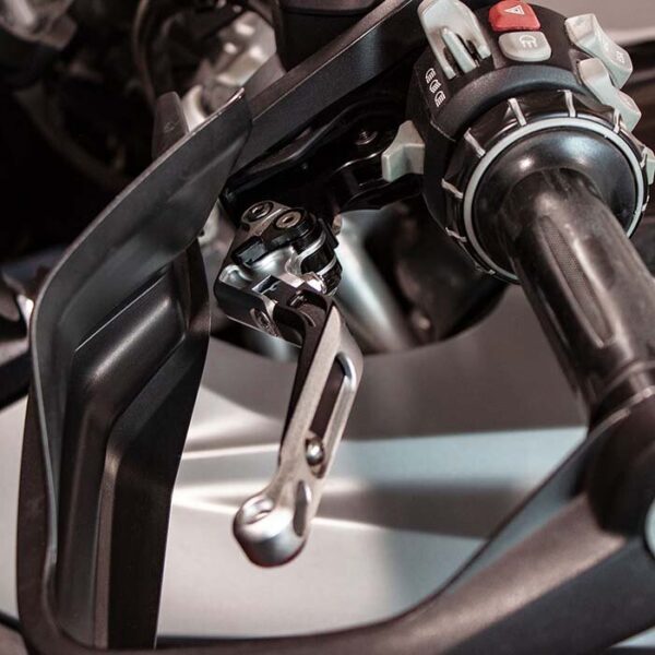 CNC gefreesde aluminium remhendel en koppelingshendelset. Mocht je motor omvallen, dan kan de hendel omhoog worden geklapt en wordt schade vermeden.