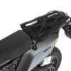 De Touratech bagageplaat XL, vervaardigd uit duurzaam 4 mm dik zwart geanodiseerd aluminium, fungeert niet alleen als een complete vervanging voor het duozadel, maar sluit ook het lelijke “gat” onder de zitting af met een discrete aluminium plaat. Robuuste roestvrijstalen haken zijn strategisch bevestigd voor een veilige bevestiging van de bagage.