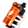 This shock absorber uses a damping shim stack specifically developed for its application. The aluminum shock absorber housing creates maximum thermal stability by optimal heat removal. Not only leads this to stable performance but also to a longer lifetime of the shock and its oil. To create the best performance for every model we use high flow pistons, low friction seals, and dedicated shimstacks. We use heavy duty components like microfinished induction hardened quenched&tempered 42CrMo 16mm piston rods, best quality bearings and stainless steel bushings. Every shock can be opened and serviced, or tuned for the customer’s application. For all shocks there is a range of springs from softer than standard till harder.