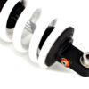 This shock absorber uses a damping shim stack specifically developed for its application. The aluminum shock absorber housing creates maximum thermal stability by optimal heat removal. Not only leads this to stable performance but also to a longer lifetime of the shock and its oil. To create the best performance for every model we use high flow pistons, low friction seals, and dedicated shimstacks. We use heavy duty components like microfinished induction hardened quenched&tempered 42CrMo 16mm piston rods, best quality bearings and stainless steel bushings. Every shock can be opened and serviced, or tuned for the customer’s application. For all shocks there is a range of springs from softer than standard till harder.