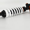 This shock absorber uses a damping shim stack specifically developed for its application. The aluminum shock absorber housing creates maximum thermal stability by optimal heat removal. Not only leads this to stable performance but also to a longer lifetime of the shock and its oil. To create the best performance for every model we use high flow pistons, low friction seals, and dedicated shimstacks. We use heavy duty components like microfinished induction hardened quenched&tempered 42CrMo 16mm piston rods, best quality bearings and stainless steel bushings. Every shock can be opened and serviced, or tuned for the customer’s application. For all shocks there is a range of springs from softer than standard till harder.